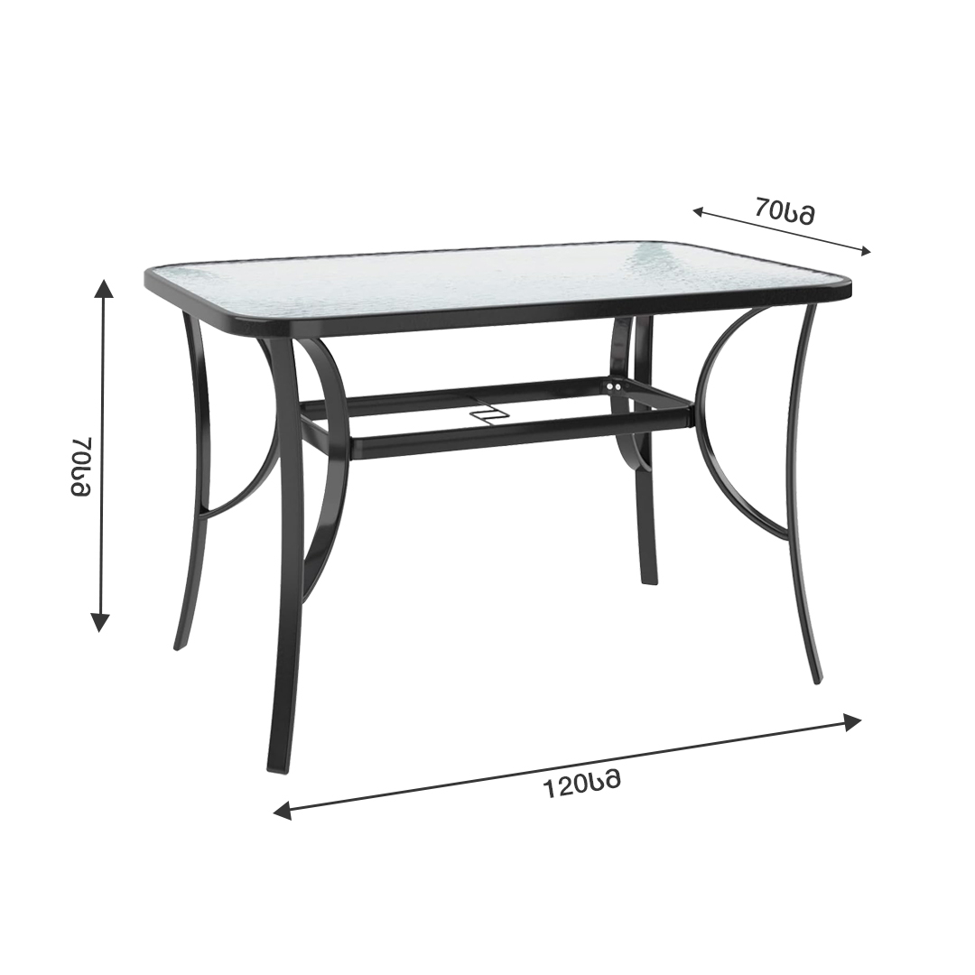 ნაწრთობი მინის მაგიდა, ქოლგის სამაგრითა და მეტალის კარკასით თქვენს ინტერიერსა თუ ექსტერიერს შესძენს მყუდროებას და გამორჩეულ დიზაინს.