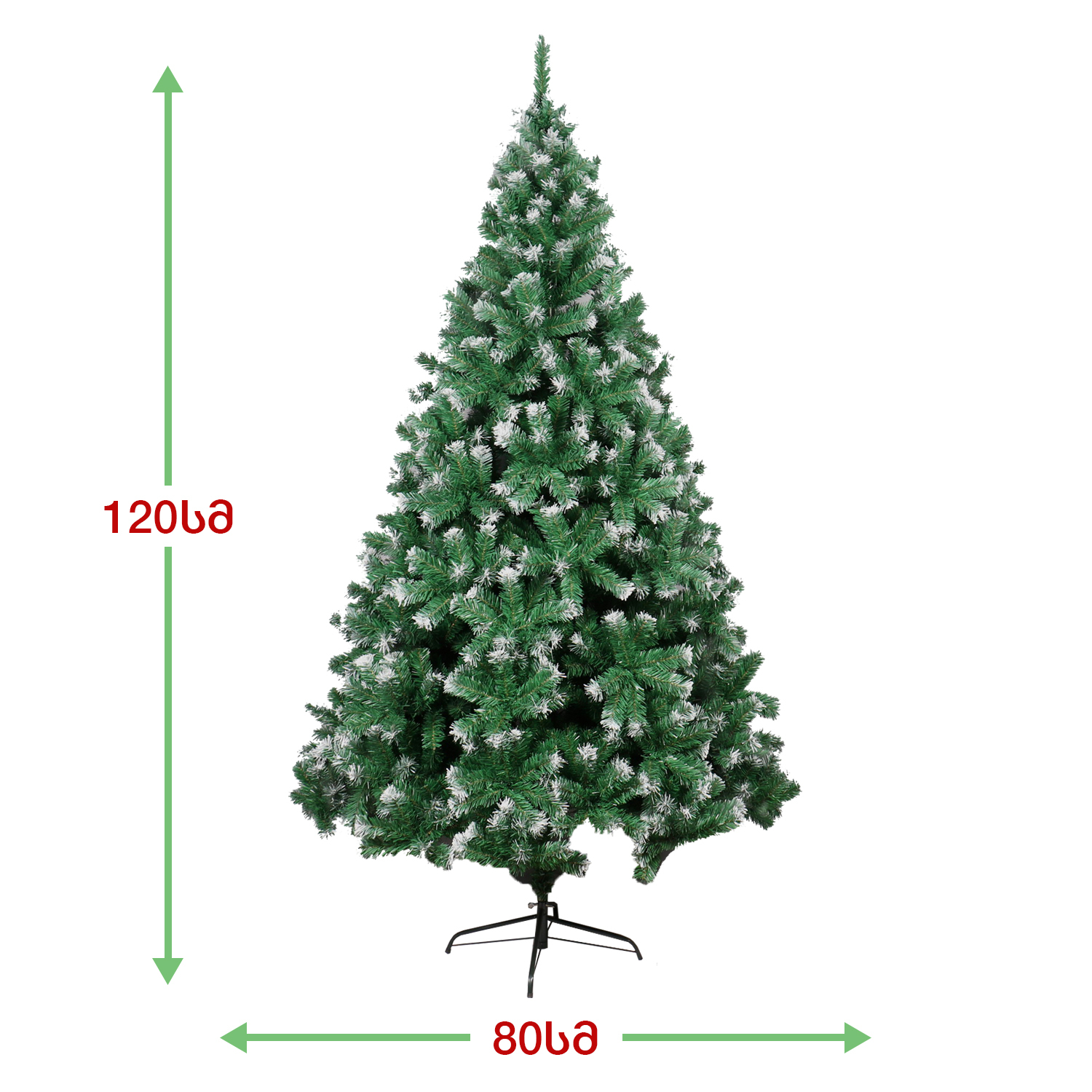 ნაძვის ხე დათოვლილი ბოლოებით,გამძლე დრეკადი მეტალის ტოტებით და ჯანმრთელობისთვის უსაფრთხო მასალისგან დამზადებული წიწვებით. მეტალის მყარი სადგამით და მთავარი ღერძით.