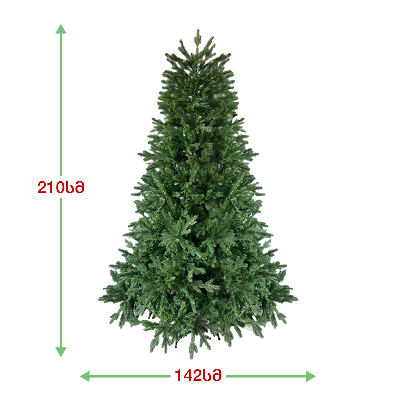 ბუნებრივის მსგავსი ნაძვის ხე, დრეკადი მეტალის ტოტებით და ჯანმრთელობისთვის უსაფრთხო მასალისგან დამზადებული შერეული ორი სახეობის სილიკონის და PVC წიწვით . მეტალის მყარი სადგამით და მთავარი ღერძით.